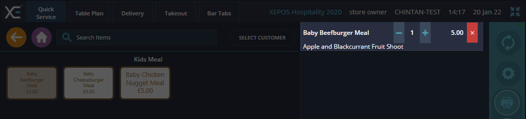 To edit items on an order, simply add any items to the cart as usual. For this example, we started an order by adding a kids meal.