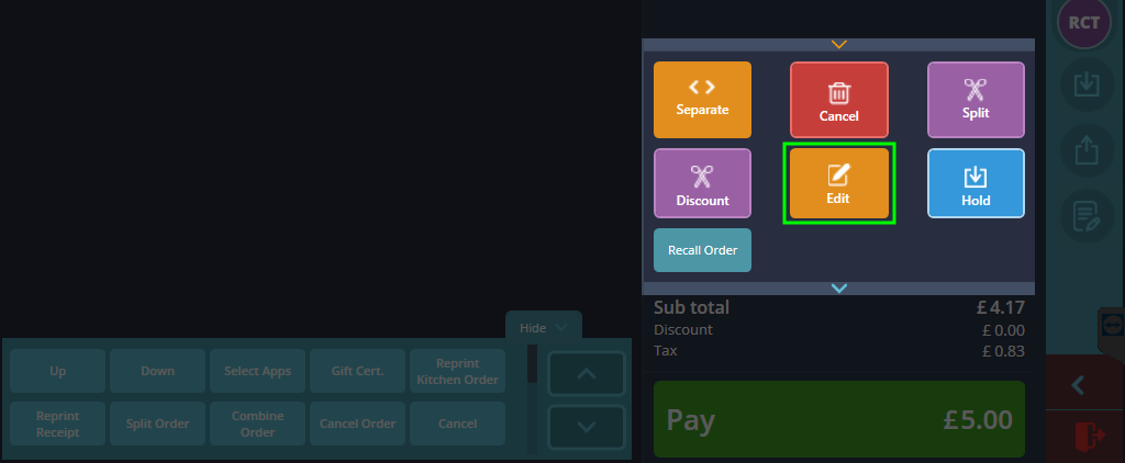 Once the full menu is exposed, go ahead and press the Edit button located in the very middle of the menu. If you have more than one item in the cart, ensure you have selected the desired item before pressing Edit otherwise you’ll end up changing the price on the wrong item.