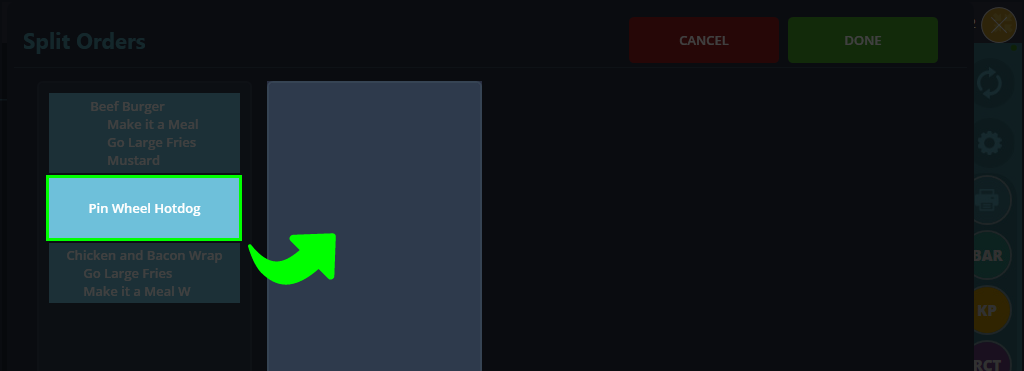 You should now have seperate checks with different items on them. Once satisfied with the split, press DONE to save changes.